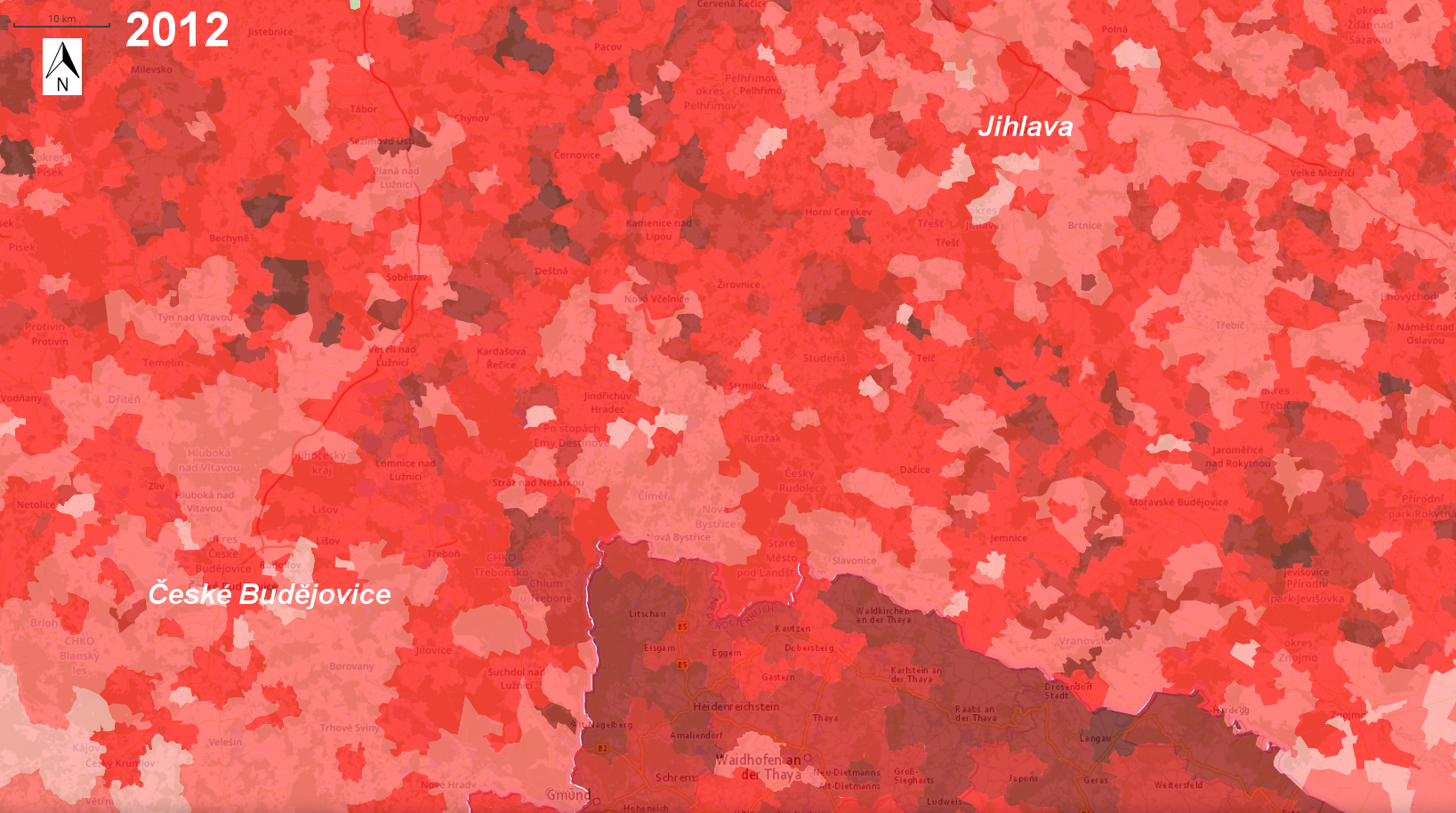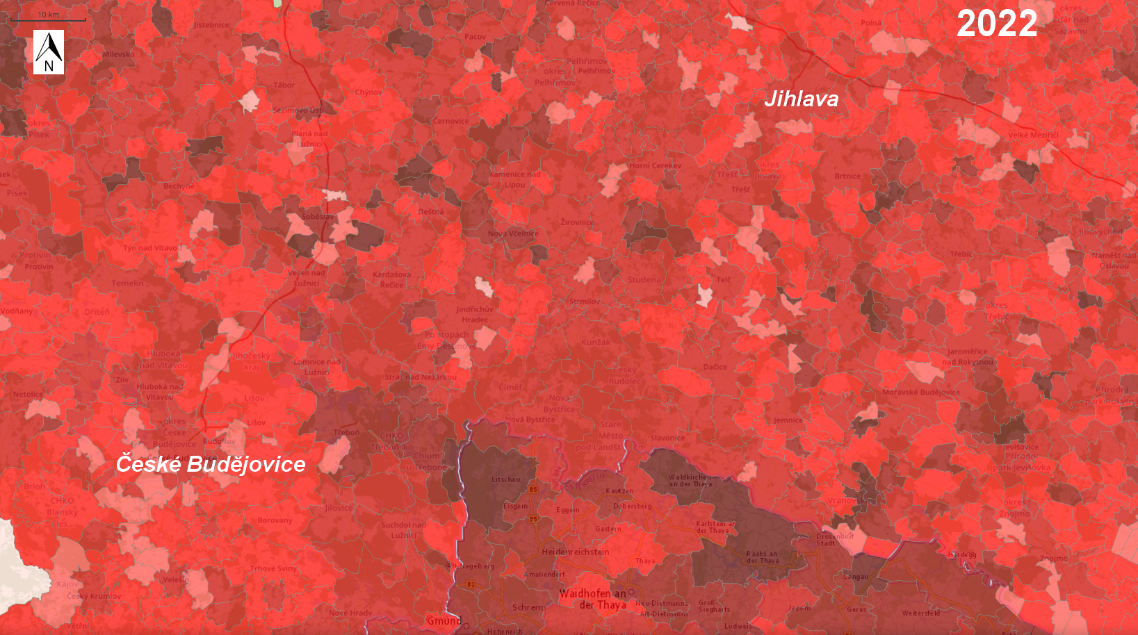 České Budějovice-Jihlava Region: Population aged >65 years (left) | 2022 (right)