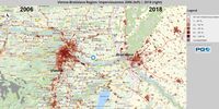 This month we are going to take a look at the changes in land use in the Centrope region. The comparison is done using Corine Land Cover, which is a satellite-based land use map showing real land use in 34 different categories. The comparison shows that between 2000 und 2018 urban areas became denser and also some smaller villages underwent some slight changes in size. However, the overall land use in the past 20 years did not change much. Some changes between adjacent categories (one up or one down in map legend) may also have occurred due to differences in automatic image interpretation due to season and weather condition at the time of satellite image generation.